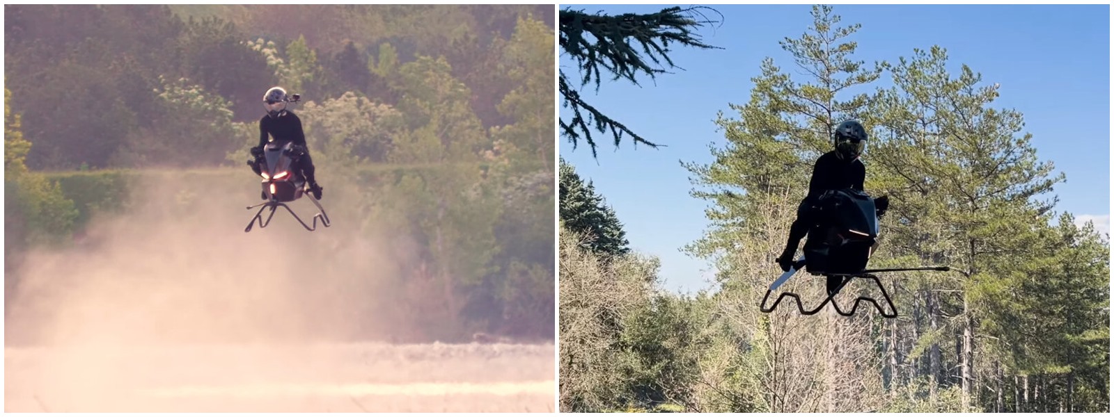 従来の飛行型ビークルと異なり、Airbike はジェット推進システムを採用し、特許取得済みの自動懸停穩定技術を搭載しています。さらに飛行コンピューターがリアルタイムで制御を行い、初心者でもすぐに操作に慣れることができます。ライダーは前傾姿勢で操縦する必要があり、従来のeVTOL(電動垂直離着陸機)のソファ型とは一線を画します。これは大型バイク愛好家にとって直感的で魅力的な設計です。後部には赤いテールライトが設置されており、減速時には自動で点灯し、空中での安全性と視認性も確保されています。